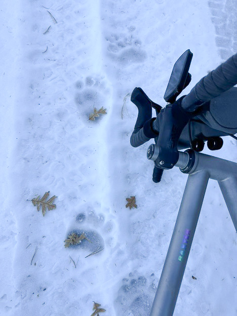 When a friend proposed this ride, I knew it was the perfect opportunity to get my friends Colin and Jonathan of ACME Bicycle Company NYC to design me a new Routt CRD. Doing so remotely added more of a challenge, but it will be okay with a fit team this good. ACME designed me a rocket ship and fit me perfectly to the high-performance edge I’d need to keep up with the excellent team members I’d be riding alongside for the week. I selected some super fast 40MM ZIPP XPLR SLICK tires to easily keep up with the boys on the road sections. This tire selection proved more insane as we approached the multiple national wildlife refuges along the route. Luckily, I brought my legacy rig and my beloved Baxter monster gravel bike for the more single-track sections. It was an absolute blast bombing down frozen National Forest Service roads in the middle of nowhere on this rig. The Baxter did NOT care!