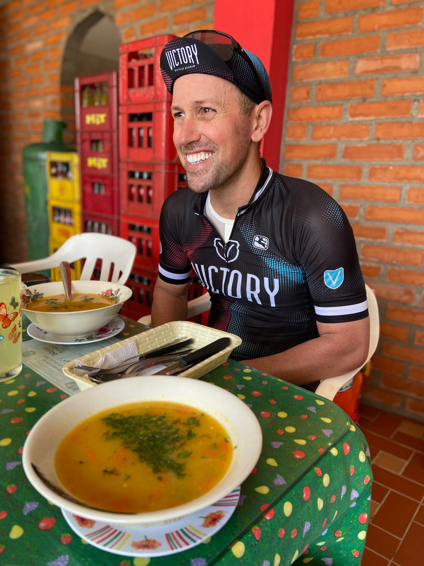 Beyond the steep climbs and descents, we found the gravel riding here to be unique in other ways. You were constantly riding by local farms and got to see the coffee fields, banana trees, avocado trees, etc. Agriculture plays such a big role in the economy of Colombia and we got up close and personal with this industry. Many times we felt we were riding through a movie set as the hillsides were so green and the setting was just perfect. One of the most amazing days on the bike took us up a 9 mile climb of over 4,000 feet, where we topped out at a lung busting elevation of 12,500 feet. After refueling, we began what was a 30 mile descent back down to the heat to 4,000 feet before beginning the next climb toward our next hotel. That descent was absolutely incredible with scenery that would just blow your mind. A number of things will stay with us forever, but one was the kindness of the people in Colombia. Let’s face it, the news focuses on the negatives and safety is always the concern of anyone who considers a trip here. Yet I can say I truly felt safer than in many cities within the US. The locals were extremely curious what we were up to and then amazed once they learned the route. Furthermore, cycling is the nations’ number 2 sport behind soccer and it truly showed where we might be climbing a big hill and at any point motorists are shouting words of encouragement along the way. Many times that was just what you needed for that extra boost. The feeling of accomplishment we all sensed upon arriving in Bucaramanga after such an amazing ride was overwhelming. This was exactly the adventure Clark and I had been seeking and to share this with Tobias as the launching pad for his brand new business made this even more special. None of us will forget this time together and Trocha Cycling Tours has a bright future ahead of it given the experience they dialed up. The route of course was amazing, but the curated selection of hotels and restaurants exceeded all of our expectations and I can