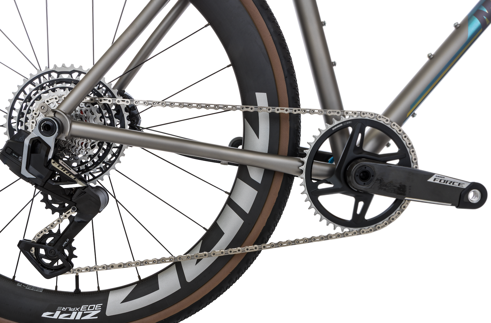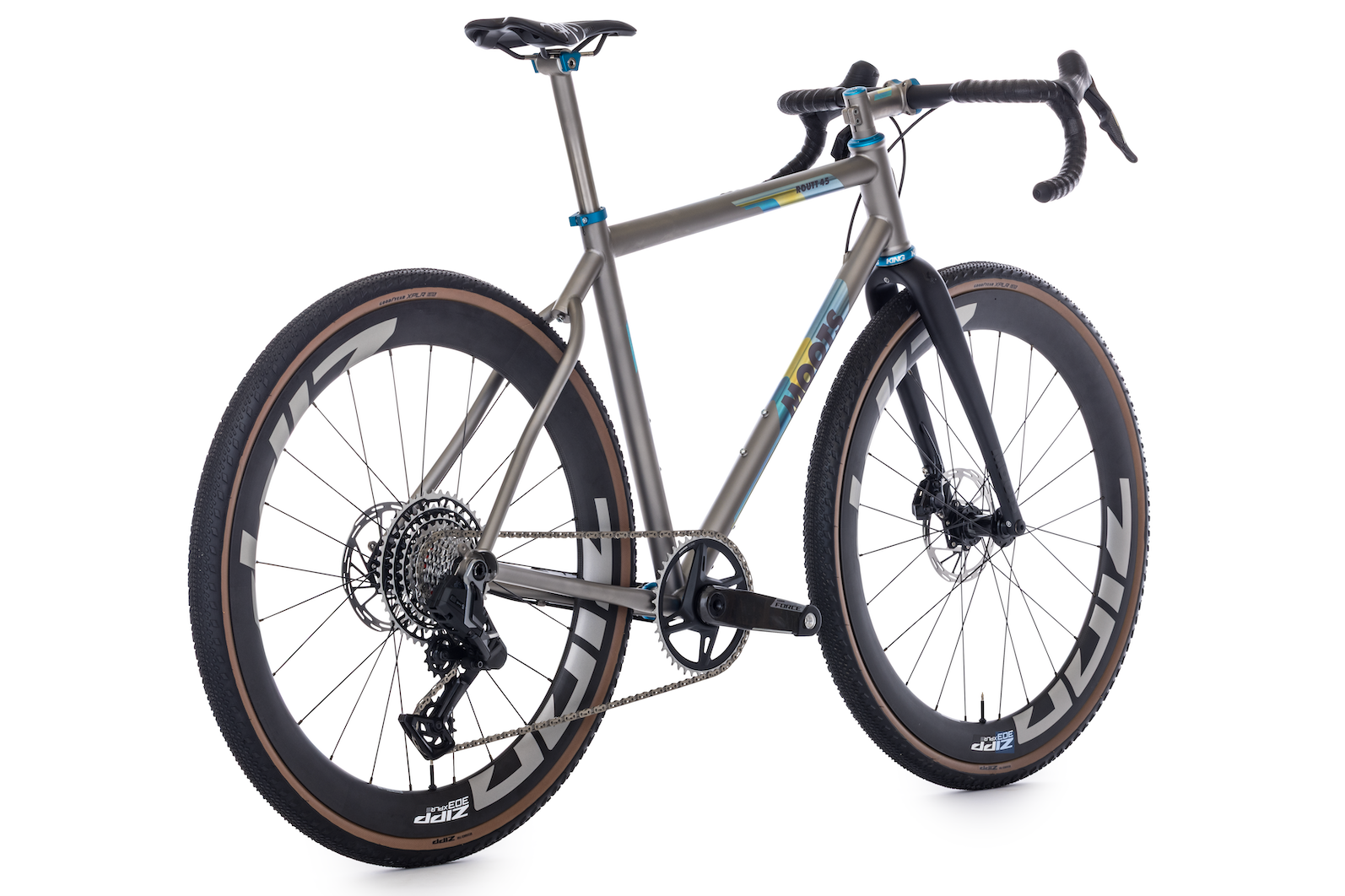 Finish: Trans AMKit: SRAM FORCE XPLR13 speedFork: Moots gravelHeadset: Chris KingWheels: ZIPP XPLR 303 S Tires: ZIPP/Goodyear XPLR Intermediate 45cStem: Moots Ti Post: Moots Ti Bar: Enve Carbon Gravel Bar Tape: Lizard Skins DSP 2.5 BlackSaddle: WTB Gravelier CroMo