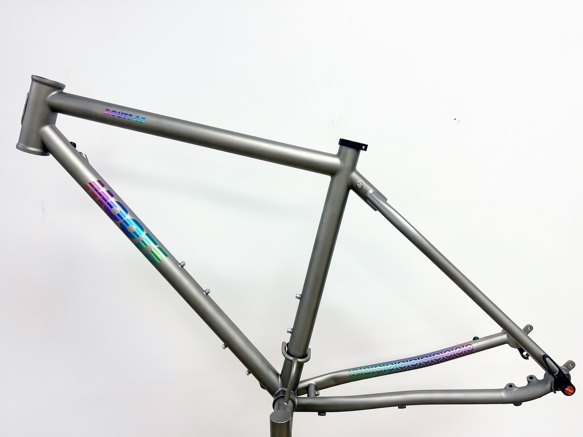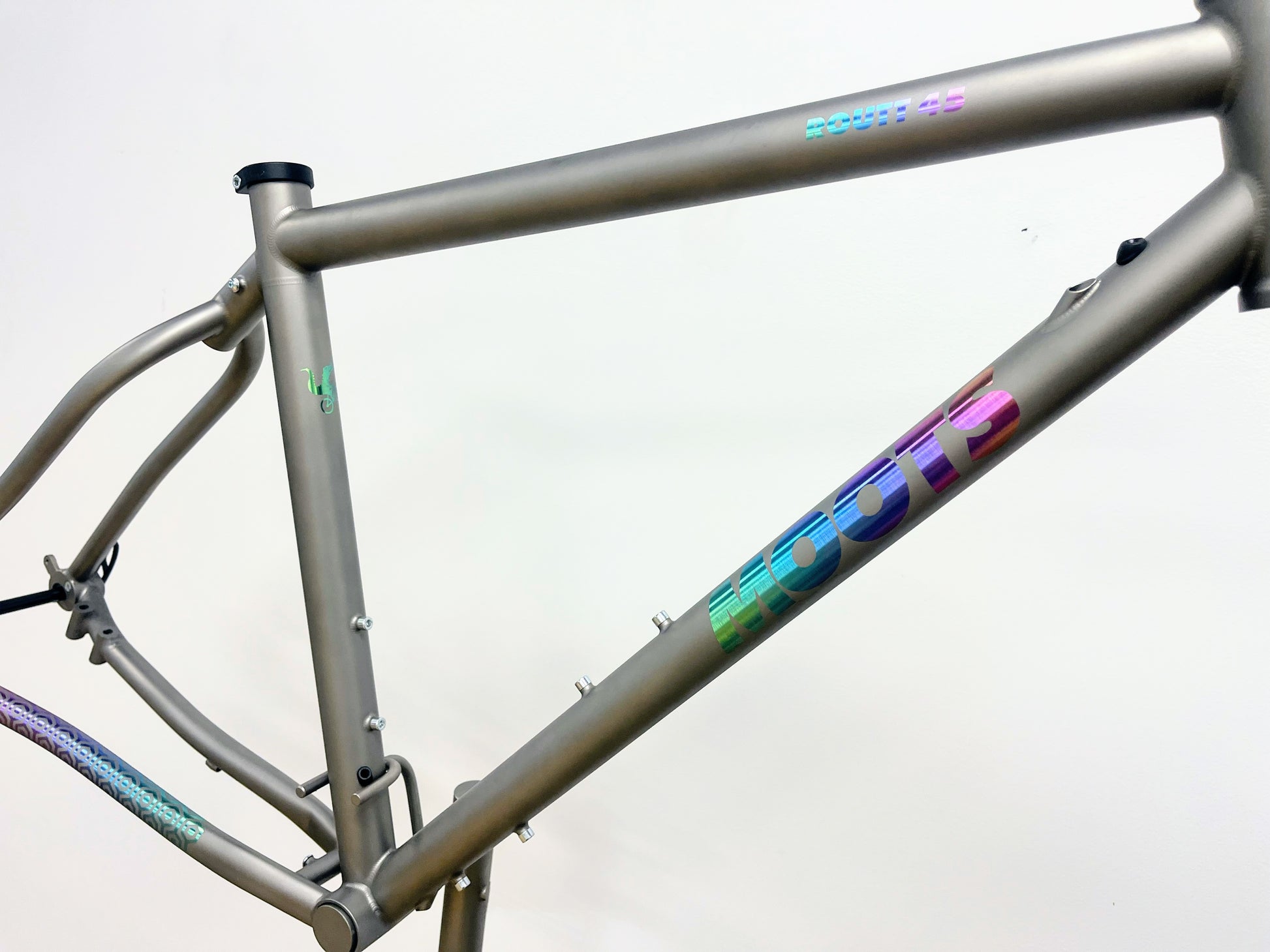 Balanced, tough, and endlessly capable, the Routt 45 is the do-everything titanium gravel bike, crafted for MOOTS riders who want one machine that never asks them to choose from a stable.