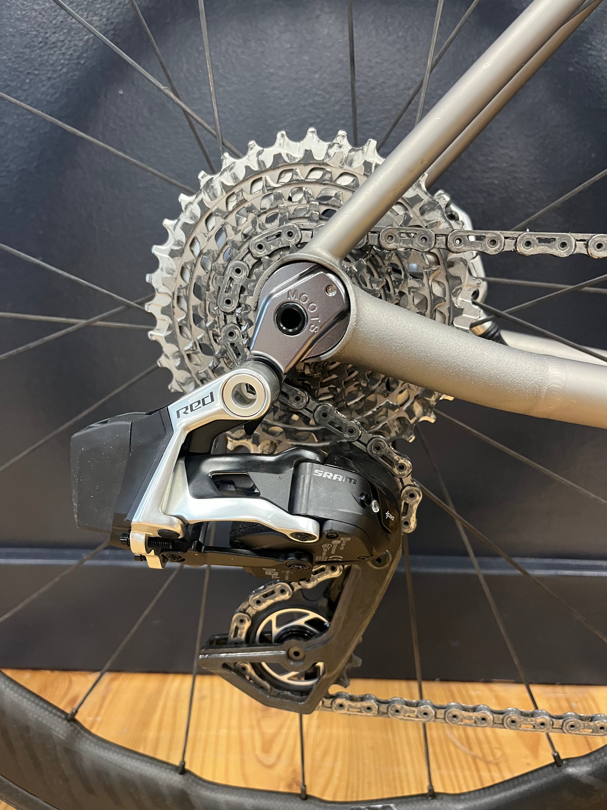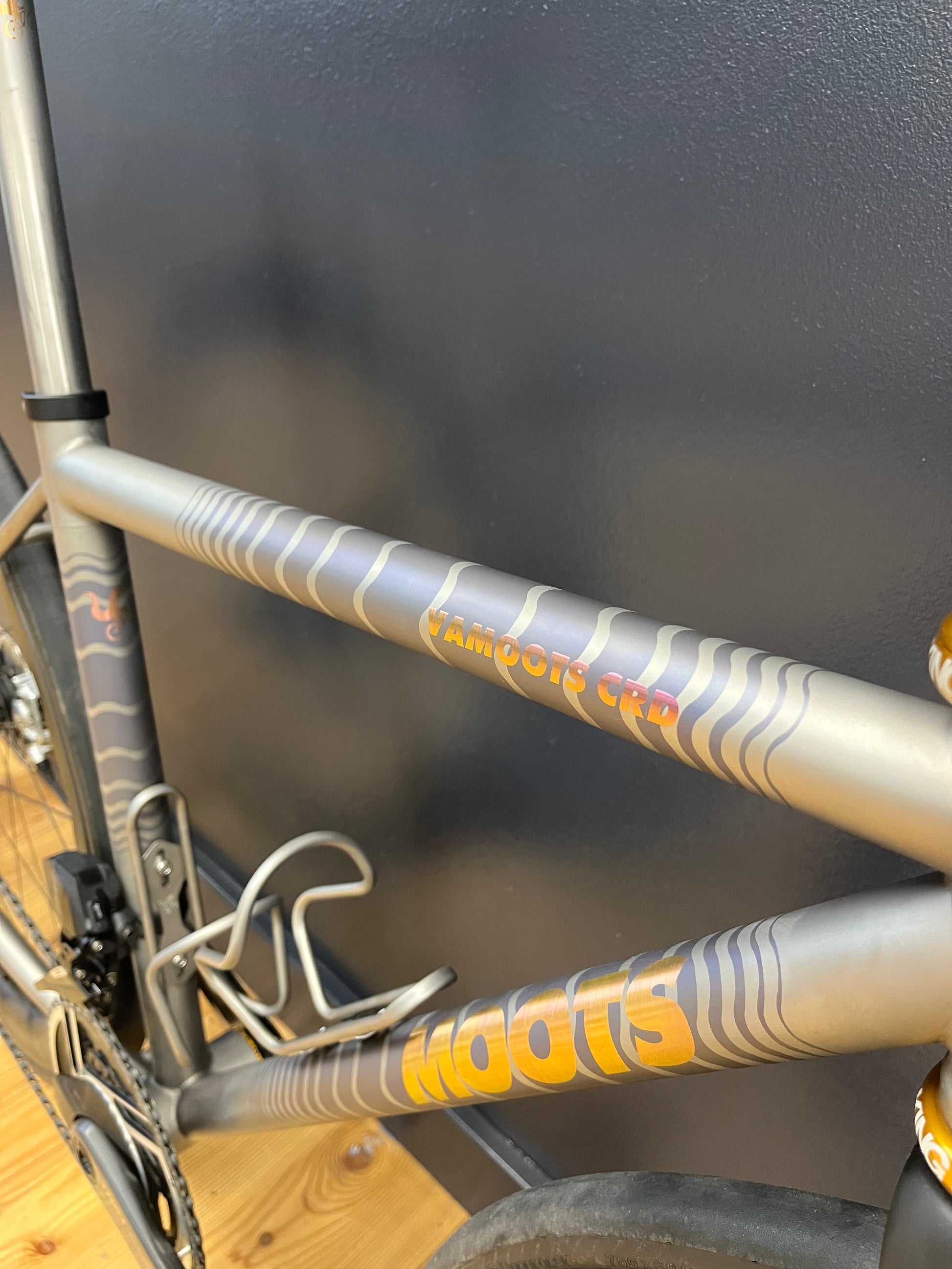 The Vamoots CRD (complete race design) is the new pinnacle of the Vamoots road line. The CRD screams performance with our legendary double butted RSL tube set for a light, crisp ride. Followed by our latest and most refined 3D printed dropouts, that save weight, add stiffness at the rear wheel, & perfect brake caliper alignment. Finished off with pencil thin seat stays for the renowned Moots ride quality. By incorporating an all-NEW integrated cockpit paired with a T47 bottom bracket into the build we have been able to route all brake hose lines internally, from the levers to the calipers, for our cleanest looking road bike to date.
